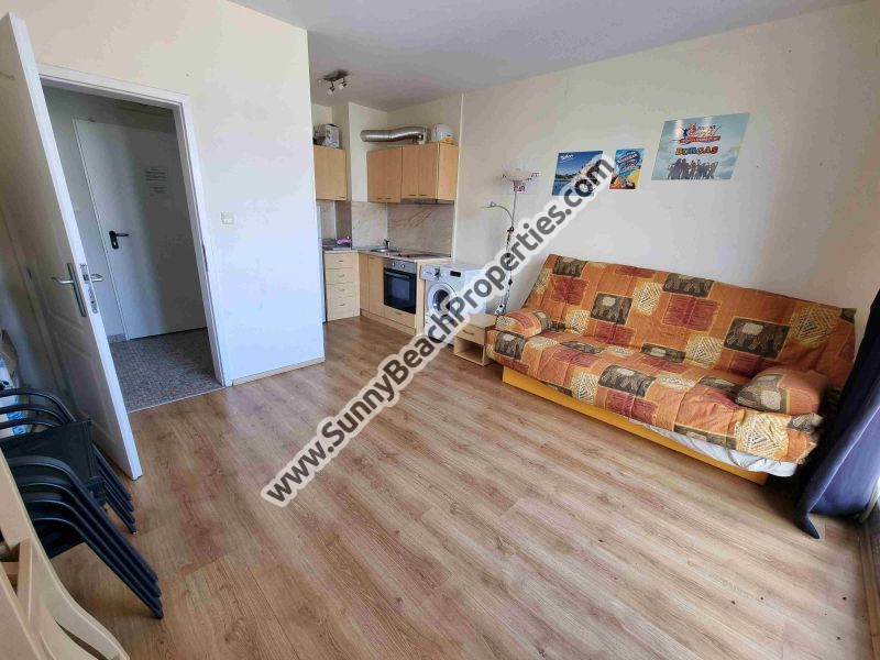 Двустаен ртремонтиран непреходен апартамент пентхаус за продажба Флорес Парк в топ центъра на Слънчев бряг, 500 м. от пляжа