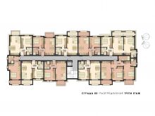 - 79 двустайни: дневна, спалня, кухненски бокс, баня с тоалетна, тераса;