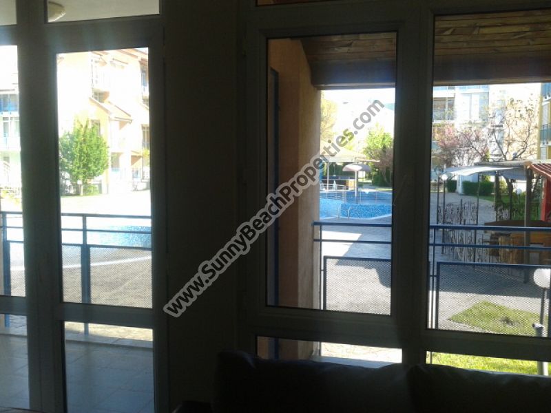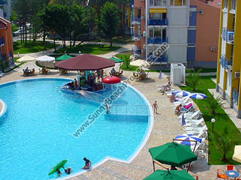 Акция за ранна резервация 10% отстъпка за всички резервации за лято 2016 направени до 29.02.2016! Луксозно обзаведен апартамент с две спални/1.5 бани с гледка към басейн на 150м от плажа в Слънчев бряг!