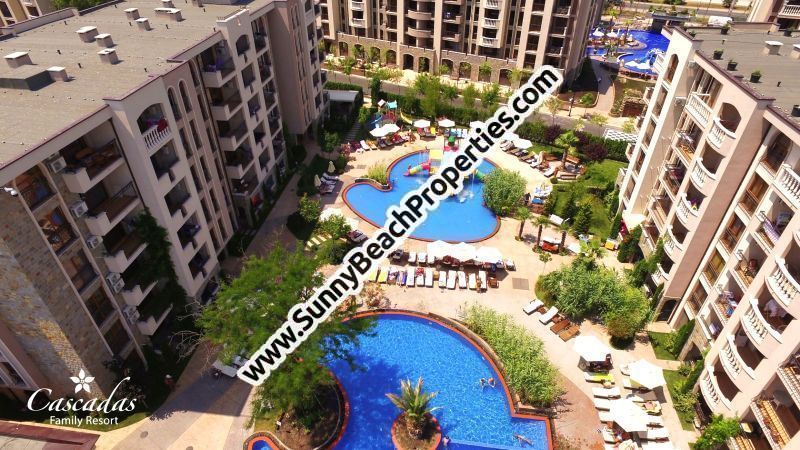 More resale beach luxury apartments for sale in 21 in 1 year-round luxury complex club Cascadas Family resort Sunny Beach, Bulgaria, in absolute tranquility in the central part of Sunny Beach Resort, Bulgaria, only 500 meters from the beach: